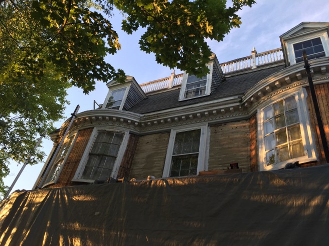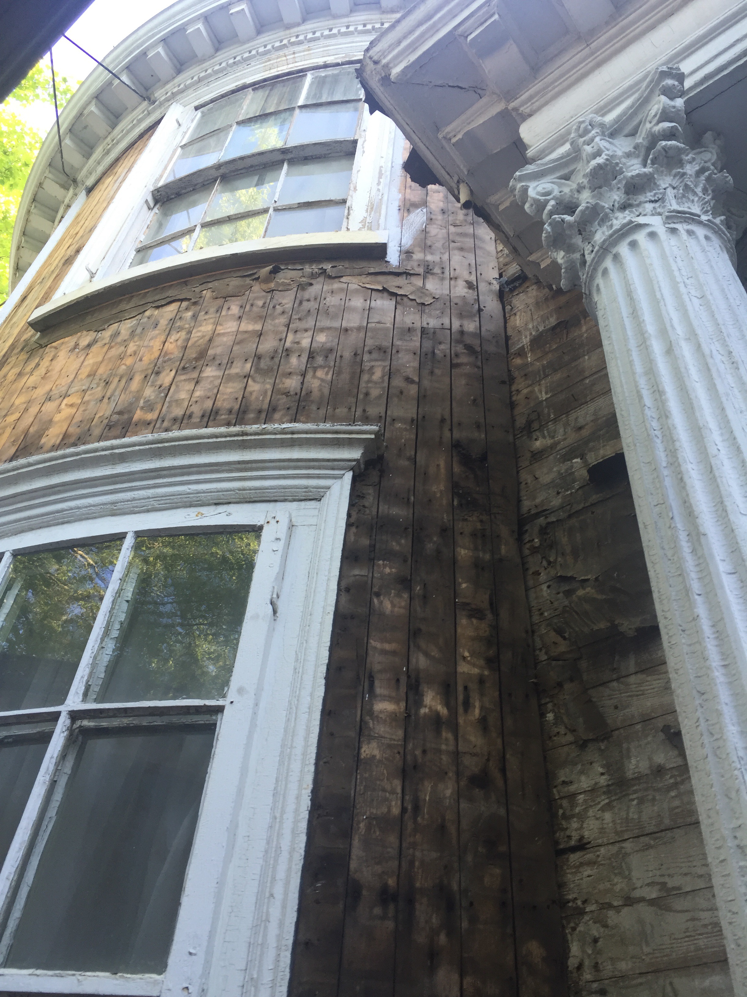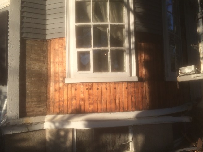 A neighbor stopped by and expressed sadness that we were removing the old siding. We would love to just have it scraped and painted but after many years of neglect, unfortunately, it is shot. There is water running down the walls on the inside and it is damaging the plaster in several rooms. When it rains out, it rains in our parlor.  Time to start anew.